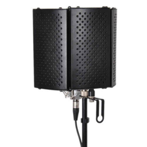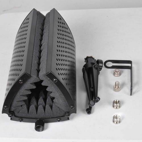 מסך אקוסטי מתקפל למיקרופון הקלט, כולל סטנד מיקרופון שולחני.